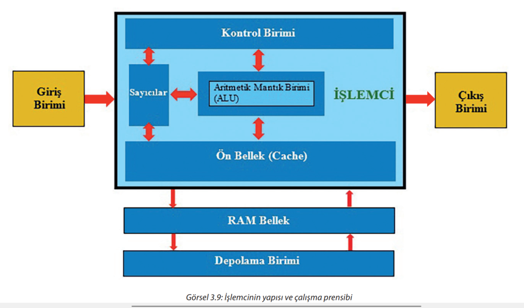 İşlemci, matematiksel ve mantıksal işlemlerin yapıldığı birimdir.