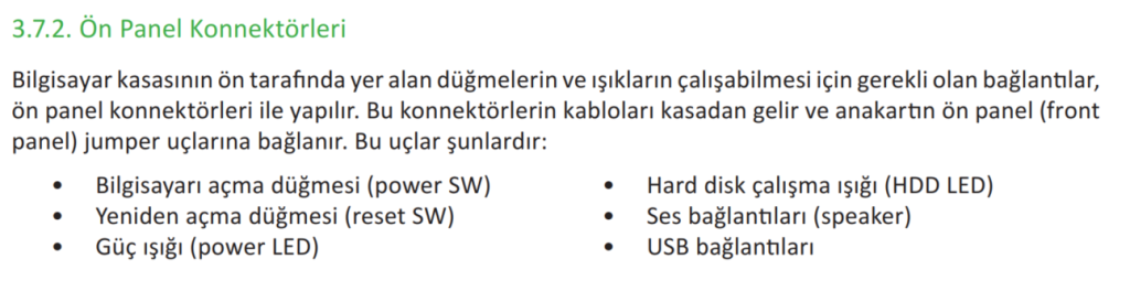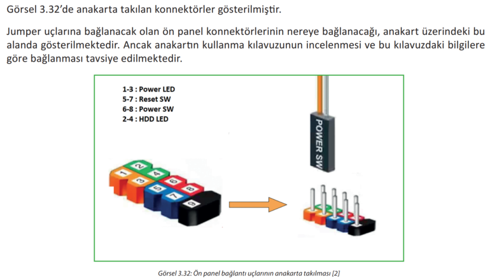 8) USB, Ses, Fan, Ön Panel Pinleri
